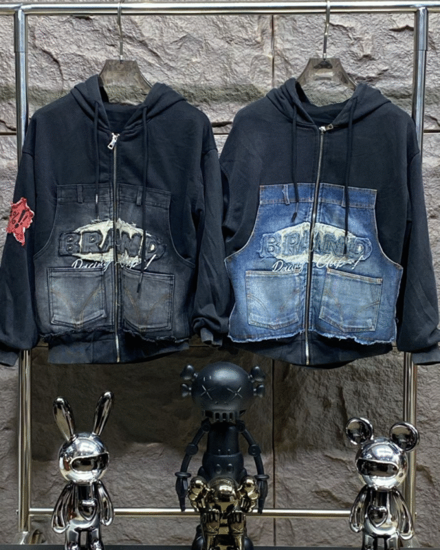 An oversized black bomber jacket featuring a unique crinkled or textured fabric, highlighted by two angled, full-length silver zippers.